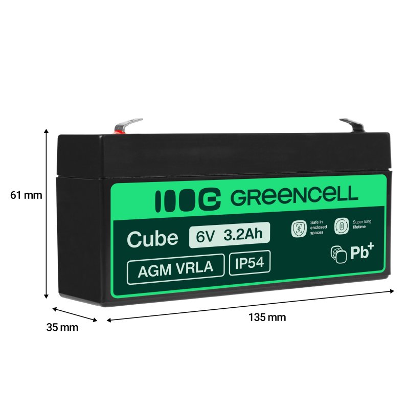 Green Cell® AGM VRLA 6V 3.3Ah huoltovapaa akku hälytysjärjestelmään, kassakoneeseen, leluihin, tietoliikenteeseen